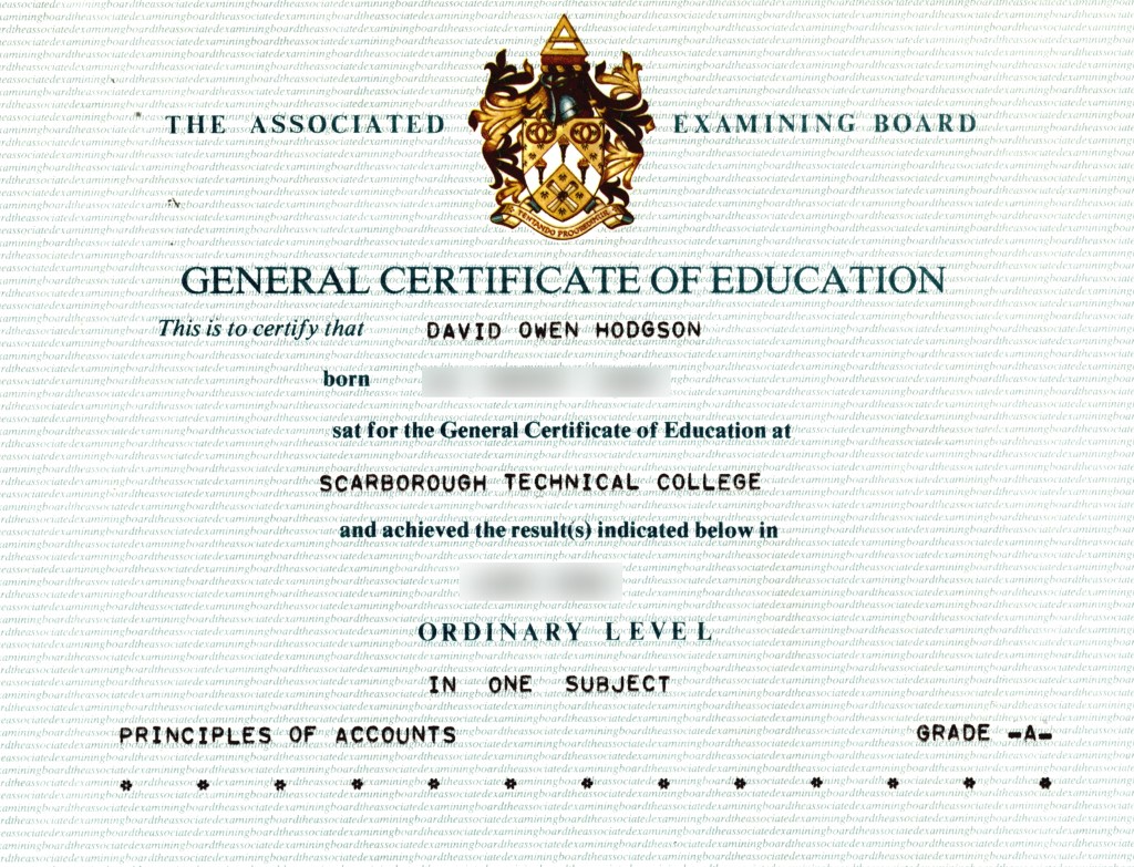 Soon after my employment commenced, my manager suggested that I might consider obtaining an Ordinary-level qualification in Accounting. It seemed as though that would help me do my job better, so I started a course at the Scarborough Technical College (now Scarborough TEC). I sat the exam and easily obtained the O-level in 1980. There was some suggestion that I should continue by taking an Advanced level qualification in the same subject, but, by that time, I had concluded that my time would better be spent studying to return to university. I already had more than sufficient O- and A-levels to qualify for university entry, so why add another one?