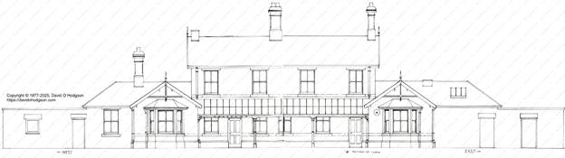 The image above is a digitized version of a gouache painting that I produced for the A-level thesis. It is to scale and shows the northerly elevation of the waiting room and ticket office building at Westwood, which was the only permanent structure on the site. If you don’t like the color scheme, please don’t complain to me! Those were the actual colors of the building at the time of my survey; very “Seventies”!