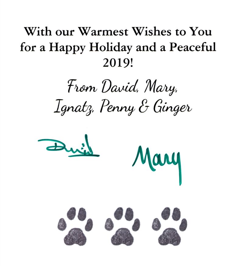 Below is our annual holiday letter, written as usual by our most senior cat, Ignatz. [I’ve allowed comments on this page, so please feel free to add your response below.]