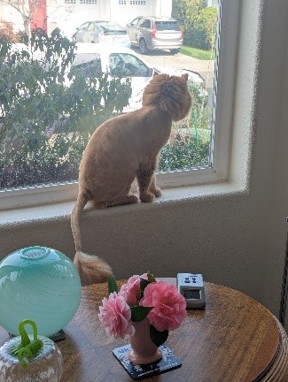 Ginger spent almost every evening going for short walks with Mum, and visiting his cat friends next door. I preferred to stay indoors and watch from the window.